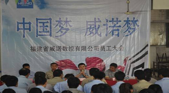 [本報訊]2013年4月30日下午15:00分,威諾數(shù)控有限公司管理部主辦召開了“威諾夢,威諾人的中國夢暨五一勞動員工大會”。參加本次會議的有總經(jīng)理翁強(qiáng)、設(shè)計總工梅富春、銷售副總經(jīng)理譚宏、各部門經(jīng)理和全體職工人員,會議由管理部龔榕麗主持。