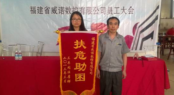 最后,通過企業(yè)幫助的員工汪厚祥因感激在他生病期間公司給予的援助之手,敬獻(xiàn)“扶危助困”錦旗一面,以表對威諾人的感謝!通過此舉,對4月20日雅安地震事件,公司著力積極響應(yīng)全省發(fā)起的“希望工程緊急救災(zāi)助學(xué)行動”捐款倡議,進(jìn)行呼吁。為幫助災(zāi)區(qū)同胞戰(zhàn)勝自然災(zāi)害,早日重建家園貢獻(xiàn)我們的一份力量。
